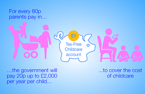 Under the initiative, eligible families will get 20% of their yearly childcare costs up to £10,000 per child paid for by the Government. This could mean payments of up to £2,000 per child.