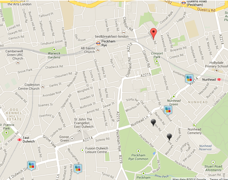 Personalised Pages are highlighted a brightly coloured icon and other nurseries are located by a black pin. When you click on a pin or icon the address is displayed and then you can click through to the relative page for that nursery.
